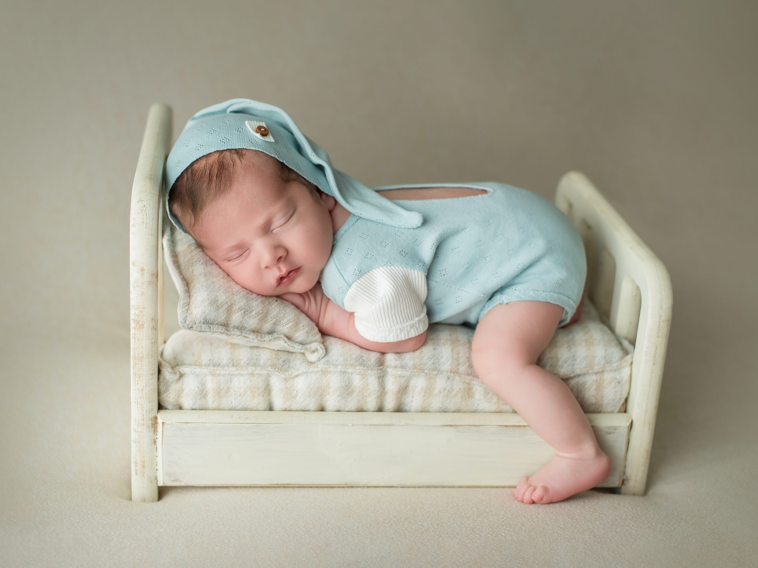 Una vez dormido y relajado la sesión irá sobre ruedas, ya que si se ha dormido profundamente, aguantará así casi todo el tiempo que dure su sesión de newborn.